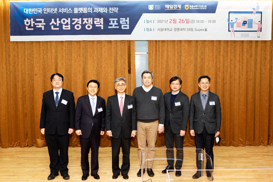 지난 2월 26일(금) 경영대학 Supex홀에서 제3차 산업경쟁력포럼을 개최하였다. 이번 3차 세션은 포스트 코로나와 4차 산업 혁명 시대에 가장 두드러진 성장을 보이는 인터넷 서비스 플랫폼을 대상으로 하여, 한국이 어떻게 반도체 산업의 경쟁력을 보다 강화할 수 있을지에 대해 고민해보고, 그 방안을 제시하는 시간을 가졌다.