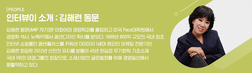 회장님께서는 태경그룹에 합류하시기 전에 국내 최초의 온라인 쇼핑몰인 ‘패션플러스’를 창업해 키워 내신 것으로 알고 있습니다. IT와 패션업계에서 인정받는 사업가가 되기까지 회장님께서 걸어오신 길을 들려주실 수 있나요?