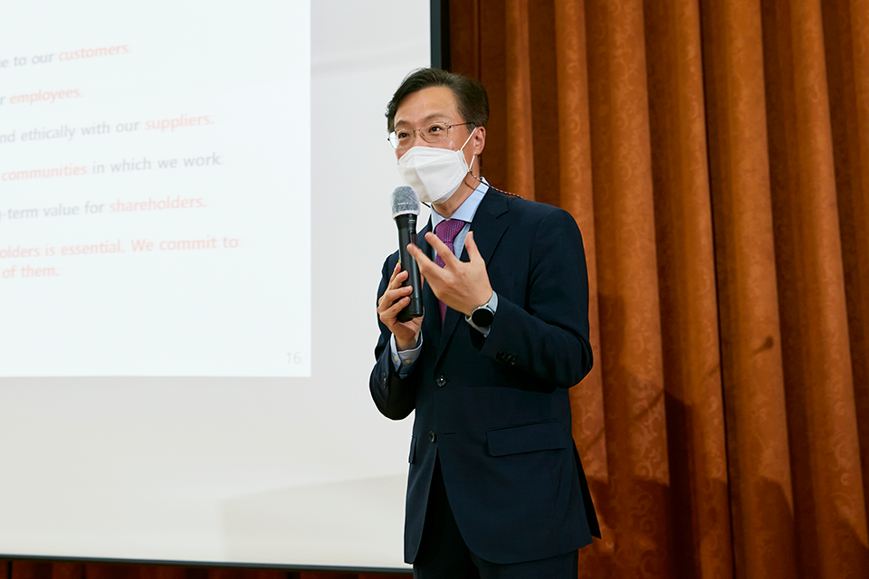 나 원장은 “최근 주주 자본주의(Shareholder Capitalism)에서 벗어나 이해관계자 자본주의(Stakeholder Capitalism)가 급부상하면서 기업의 역할은 이윤을 창출하는 것 이상으로 확장되어 정의되고 있으며, 기업의 성과를 측정하기 위해서는 ESG 달성도 또한 측정되어야 한다”고 말하며, ESG의 시작(과거)을 변화하는 자본주의와 연결시켜 설명하였다.