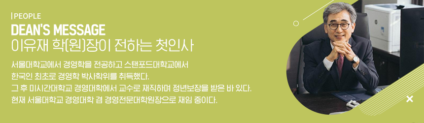 서울대학교 경영대학(원) 장 이유재입니다.