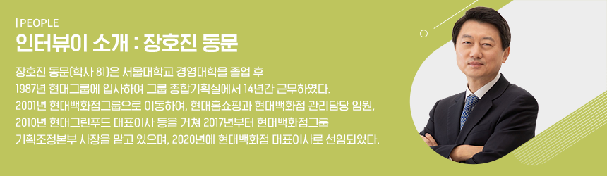 사실 각각의 여정을 선택하기보다는 회사의 명령에 따라 이동했어요. 현대그룹 종합기획실에서 14년간 근무를 했는데, ‘90년대 말부터 현대그룹이 여러 소그룹으로 분리되면서 종합기획실의 역할이 약해지게 되었고, 저도 계열사 중 어느 한 곳으로 옮겨야 하는 상황이 되었죠. 제가 사원 시절에 현대백화점의 전신이었던 금강개발산업 감사를 나간 적이 있었는데, 중후 장대한 사업을 위주로 하던 다른 계열사와 달리, 직접 고객을 대상으로 소매유통업을 하는 이 회사가 상당히 흥미롭게 느껴졌고, 마침 현대백화점에서 제안이 와서 이리로 옮기게 되었죠.