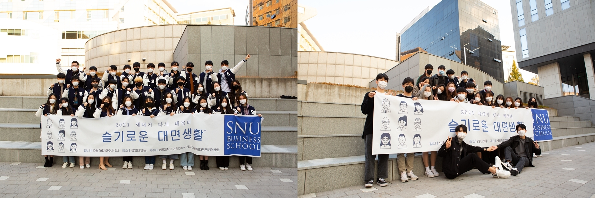 지난 10월 29일(금) 서울대학교 경영대학 58동에서 21학번 학생들을 대상으로 한 <2021 새내기 다시 배움터>가 진행되었다. 제35대 경영대학 학생회 ‘바람’의 주관으로 개최된 이번 행사에는 21학번 115명, 20학번 20명의 학생들과 이유재 경영대학(원)장이 참석하여 자리를 빛내었다.
