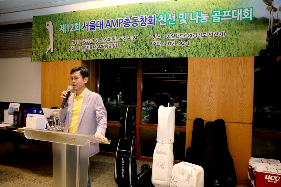 지난 8월 28일(일) 경기도 안산시 아일랜드 CC에서 제12회 서울대학교 AMP총동창회 친선 및 나눔 골프대회가 개최되었다. 이번 대회는 서울대학교 경영대학 최고경영자과정 91기와 92기의 주관으로 이루어졌으며, 대회는 오후 1시 30분부터 7시까지 총 5시간 반 가량 진행되었다.