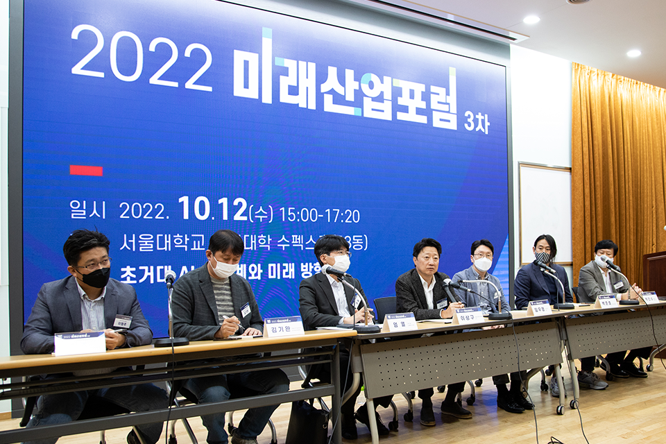 지난 10월 12일 서울대학교 수펙스홀에서 2022 미래산업포럼 3차가 열렸다. 서울대학교 경영대학 벤처경영기업가센터와 매일경제가 공동주관하고, LG경영연구원이 후원하는 이번 3차 포럼에서는 학계와 업계 및 정부당국 담당자가 모여 <초거대 AI 생태계와 미래 방향>을 주제로 심도 깊은 논의를 펼쳤다.