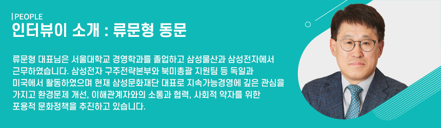 대표이사가 아닌 사람 류문형으로서의 인생의 가치관은 무엇인지, 이야기를 듣고 싶습니다.