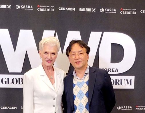 일론 머스크의 모친인 메이 머스크와 WWD 김태현 의장이 글로벌 리더스 포럼 포토월에서 포즈를 취하고 있다. WWD KOREA가 주최한 글로벌 리더스 포럼 행사에는 메이 머스크가 대표 연사로 참여하였으며, 제임스 팔론 같은 글로벌 탑 저널리스트, 그리고 디올의 크리에이티브 디렉터 마리아 그라치아 치우리 등 유명 인사들의 축하 메시지도 전달되었다. 또한, 아시아의 대부호인 애드리언 청, 김성주 성주그룹 회장, 강윤선 준오헤어 대표, 가수 션 등 각 분야별 리더들도 연사로 참여했다.