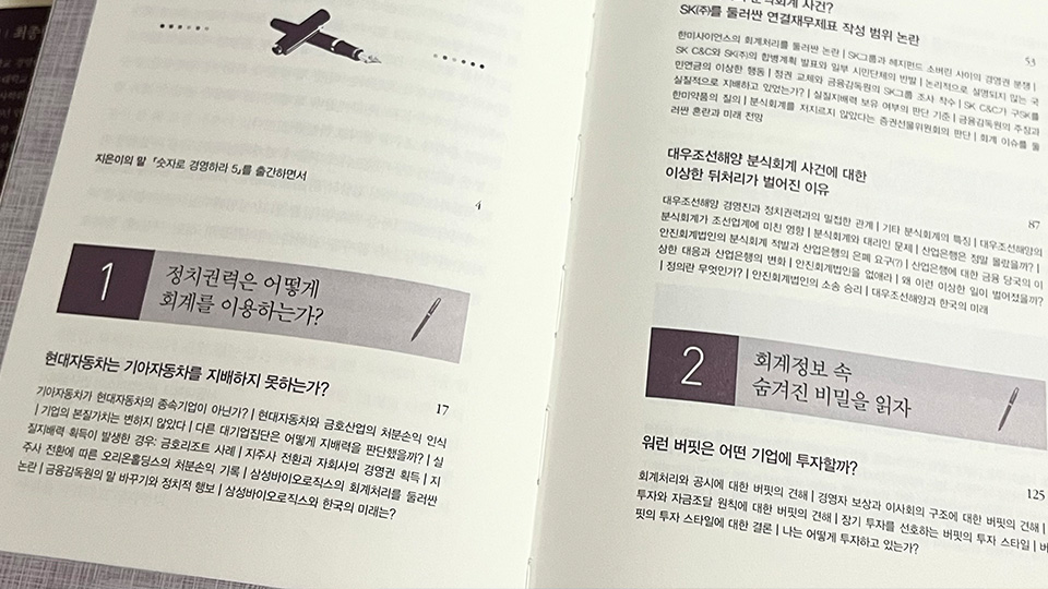 학생들에게도 책을 추천하고 싶습니다. 이번 가을학기에 제가 오랜만에 학부 강의를 하는데, 회계 사례를 바탕으로 수업합니다. 한국 기업 사례들, 이 책 5권에 들어있는 사례들이 수업에 많이 나옵니다. 기본 회계 지식이 필요한 과목이라 좀 어렵지만, 그렇더라도 많이 배우고 싶은 학생들을 수업에서 만나길 바랍니다.
