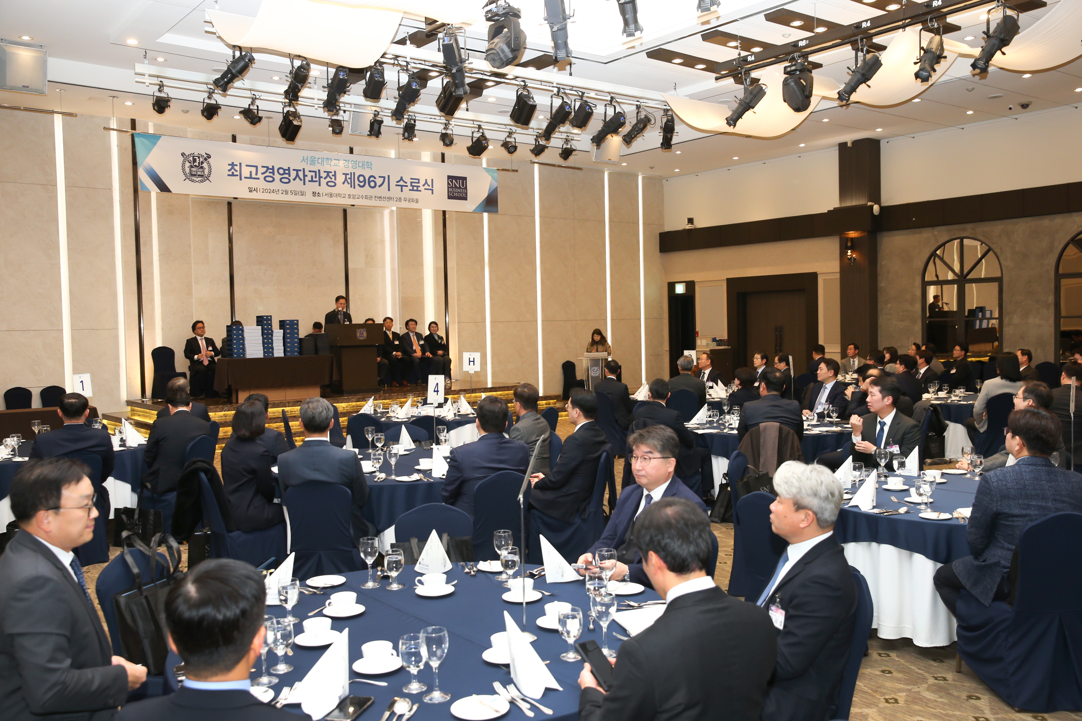 지난 2월 5일(월) 서울대학교 호암교수회관 컨벤션센터 무궁화홀에서 경영대학 최고경영자과정(AMP) 제96기 수료식이 진행되었다.