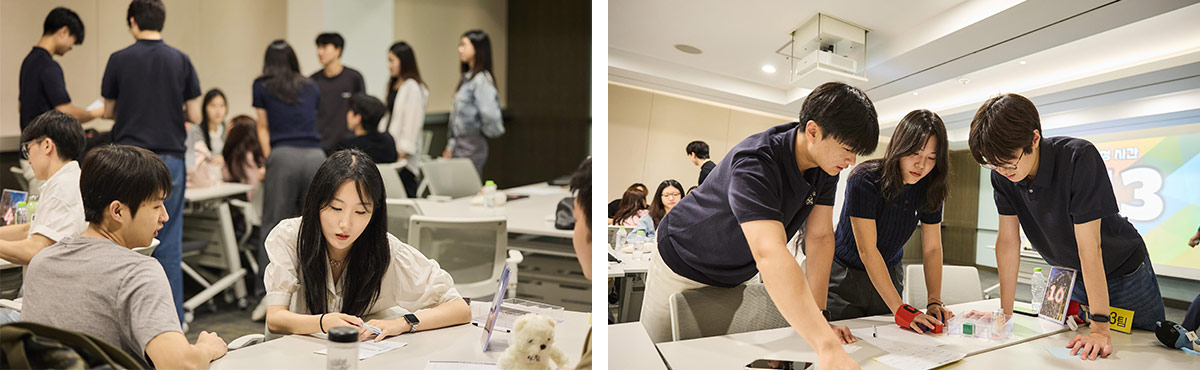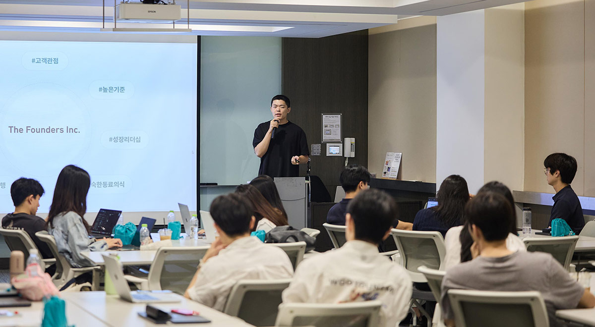 첫째 날에는 학생들의 친밀도를 높이기 위하여 전략게임 중심의 팀 빌딩 프로그램을 진행했고 이후 아이디어톤 조별 활동이 이어졌다. 아이디어톤의 주제는 뷰티·헬스케어 분야에서 혁신적인 솔루션을 개발 중인 ㈜더파운더즈가 발제했으며 실제 기업이 고민하는 문제를 다루며 창업 기업의 직면하는 문제를 직접 체험할 수 있었다.