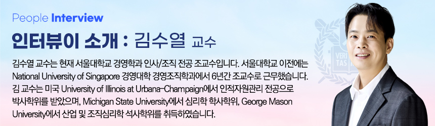 서울대에 오게 된 건 정말 기쁘고, 또 영광스러운 일이라고 생각해요. 동시에 책임감도 굉장히 큽니다. 서울대는 한국 사회에서 상징적인 의미가 있는 곳이잖아요. 저는 이곳에서 단순히 이론적인 연구에 머무르지 않고, 실제 사회와 기업 현장에서 도움이 되는 실질적인 연구를 하고 싶어요. 교육에서도 학생들이 배운 걸 바로 현실에 적용할 수 있도록, 학문과 실무를 잇는 가교 역할을 하고 싶습니다.