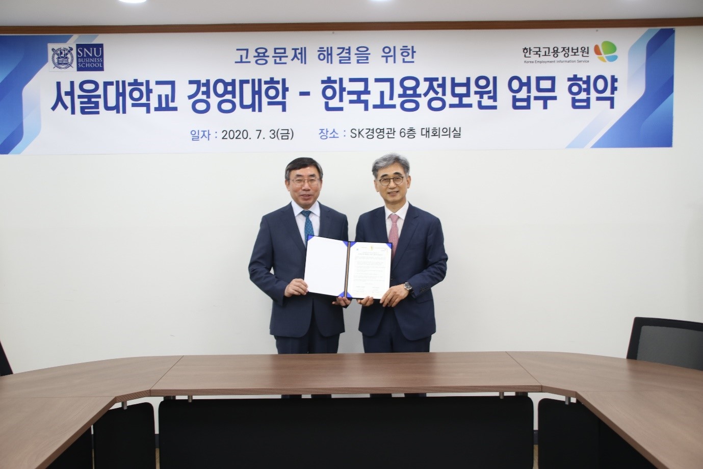 지난 7월 3일, 서울대학교 경영대학은 코로나19로 인해 더욱 심화된 고용 문제 해결에 동참하기 위해 한국고용정보원과 MOU를 체결했다.