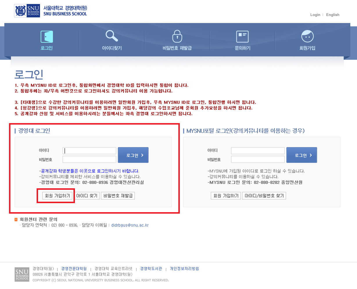 서울대학교 경영대학 홈페이지 회원가입 방법